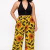 Ce pantalon en tissu Wax allie élégance et confort avec sa coupe taille haute et jambes larges. Son imprimé floral vibrant mêle des fleurs orange éclatantes sur un fond jaune lumineux, rehaussé de fines lignes noires qui structurent le motif.