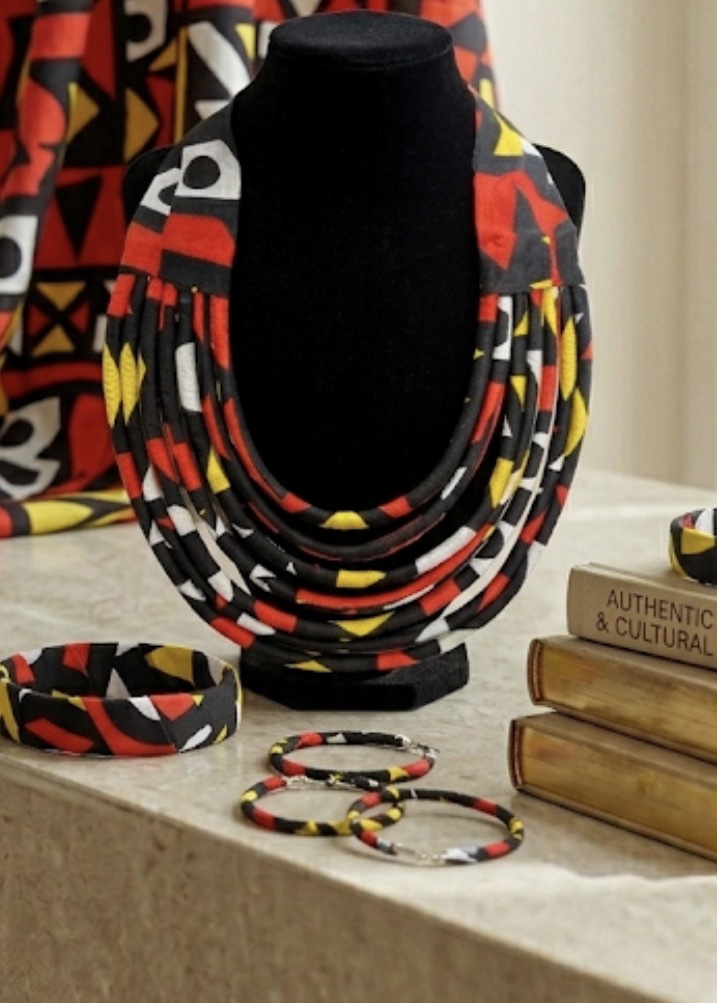 collier  en wax  , bracelets en wax  et boucle d oreille en wax