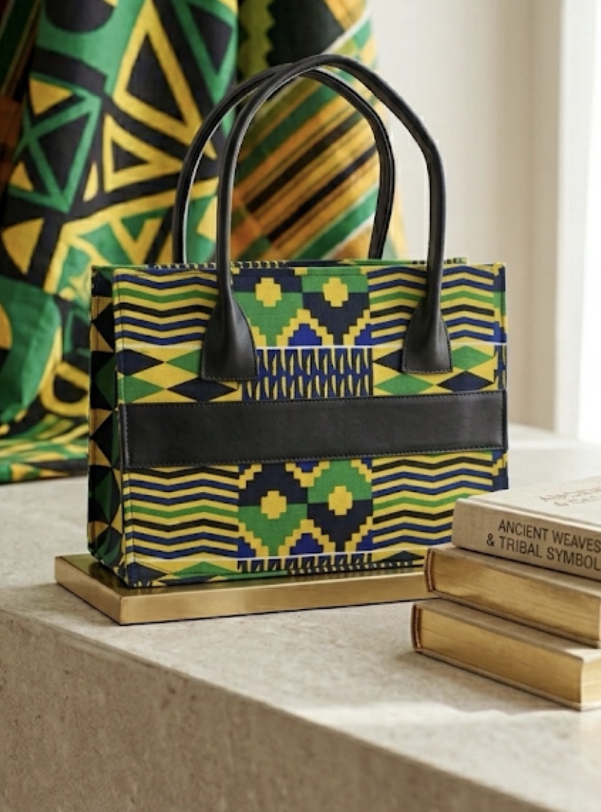 L’élégance ethnique en version luxe. Un cabas spacieux qui marie l’éclat de l’imprimé Kenté vert et jaune avec la noblesse du cuir noir. Le sac parfait pour celles qui recherchent une pièce forte, artisanale et ultra-pratique.